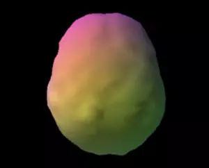 A Imagem SPECT do cérebro de superfície saudável à esquerda mostra atividade completa e até simétrica.